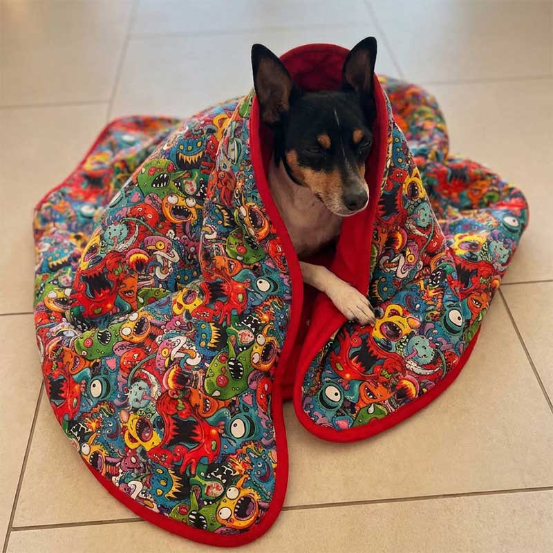 Двостороння водонепроникна ковдра з хутром Montmorency - Monsters with red 100х77 см