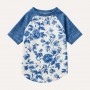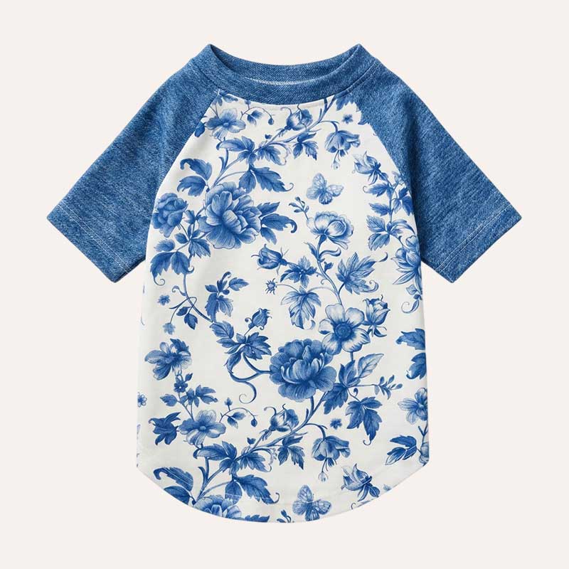 Основний трикотаж — білий, прикрашений делікатним квітковим орнаментом у стилі гжель. Глибокий синій малюнок виглядає благородно і чисто, створюючи той самий ефект «тихого люксу», коли річ не кричить, а говорить впевнено і зі смаком.