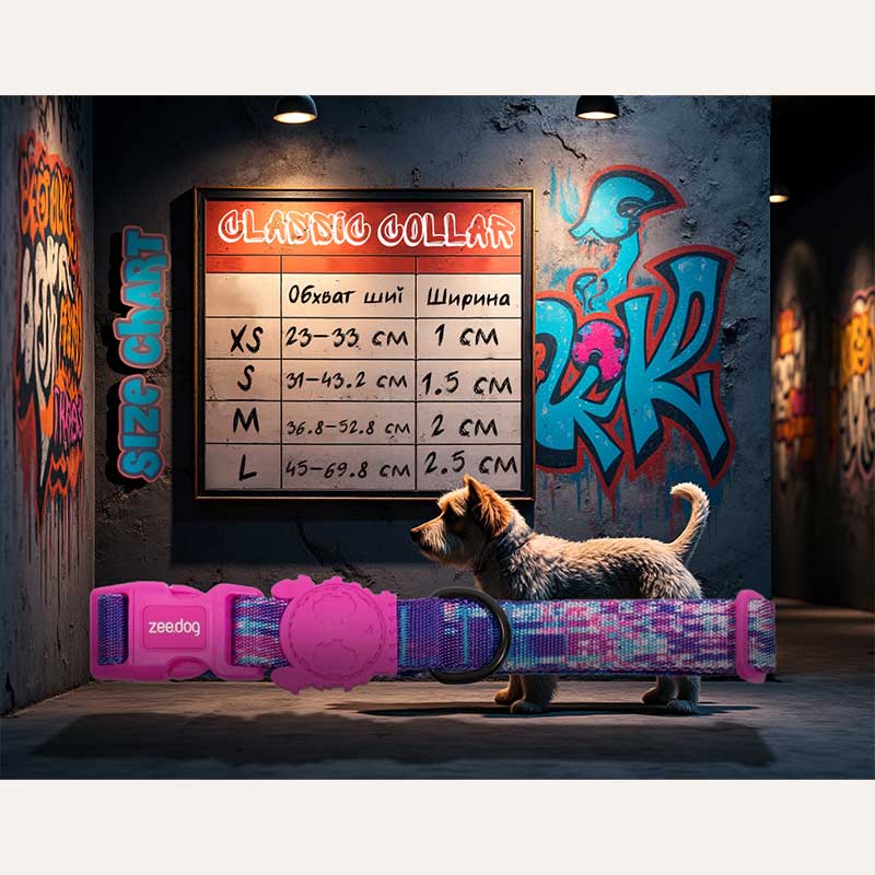 Застібка з чотириточковим замком тримає впевнено — без сюрпризів і випадкових “ой”. Гумовий логотип Zee.Dog не просто знак, а мовчазний охоронець швів: бере на себе навантаження, щоб час не залишав слідів. А коли на нашийнику з’являються сліди життя — пил, дощ, трава — він без образ іде в прання, щоб знову бути готовим до дороги.
