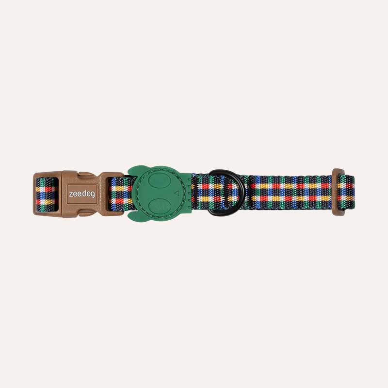 Це нашийник із характером, що не потребує демонстрації. Класичний клітинний візерунок — синій, зелений, червоний, жовтий — ніби відсилання до старих добрих аутдор-тканин, які знають, що таке дорога, вітер і час. Тут традиція не сперечається з сучасністю — вони йдуть поруч.