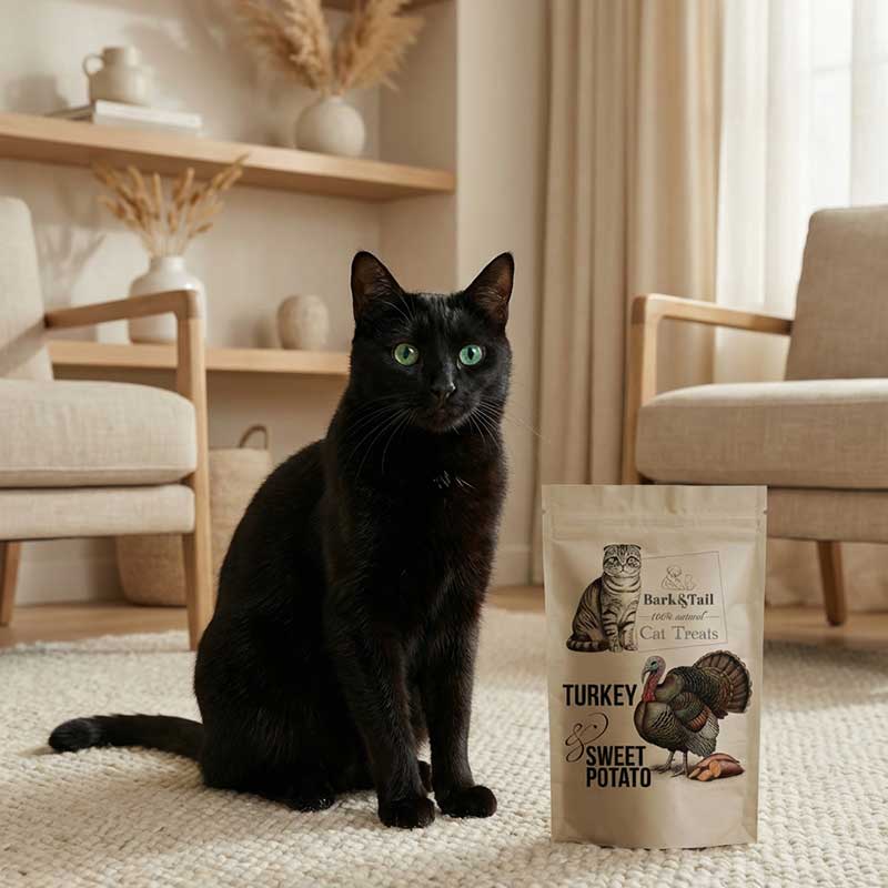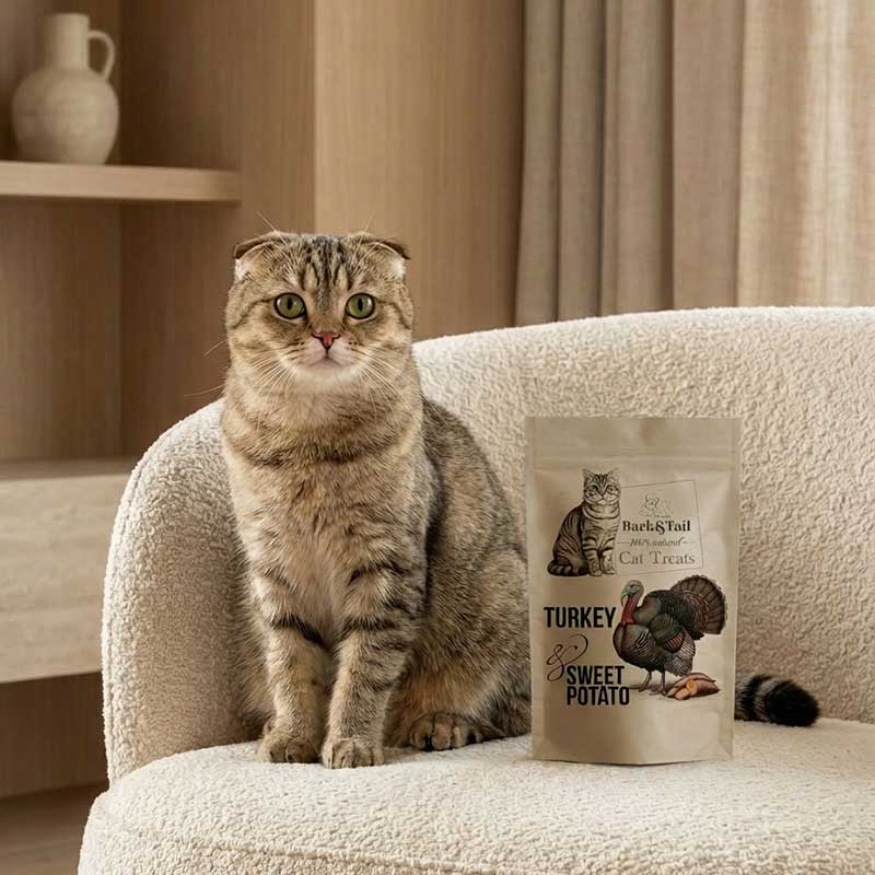 100% натуральні ласощі для котів – індичка + батат від Bark&Tail