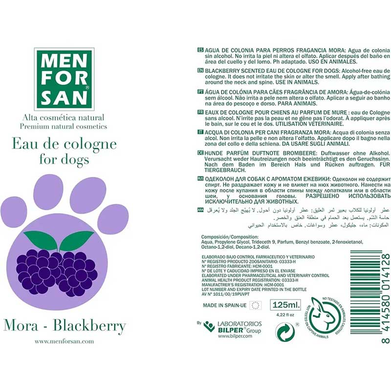 Натуральний одеколон Menforsan з ароматом ожини створений для того, щоб подарувати вашому улюбленцю свіжий та приємний запах після купання. Його делікатна формула дбайливо доглядає за шерстю, не подразнює шкіру і не змінює нюхових властивостей тварини. Соковитий ягідний аромат ожини надає шерсті приємного відчуття чистоти та доглянутості.