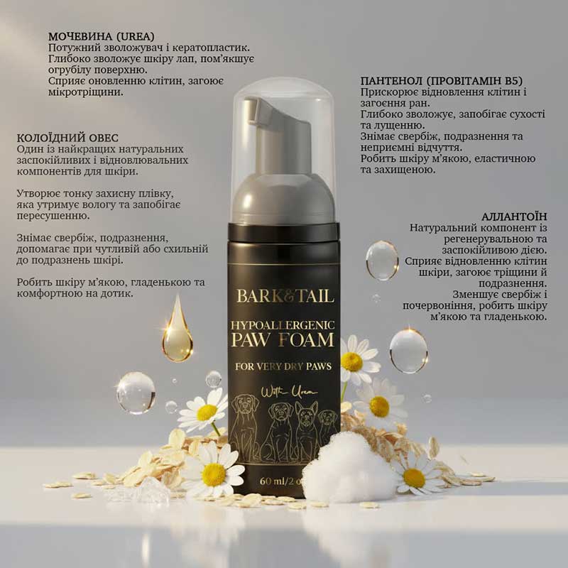 Піна гіпоалергенна для дуже сухих лап з сечовиною Bark&Tail - Hypoallergenic Paw Foam, 60 мл