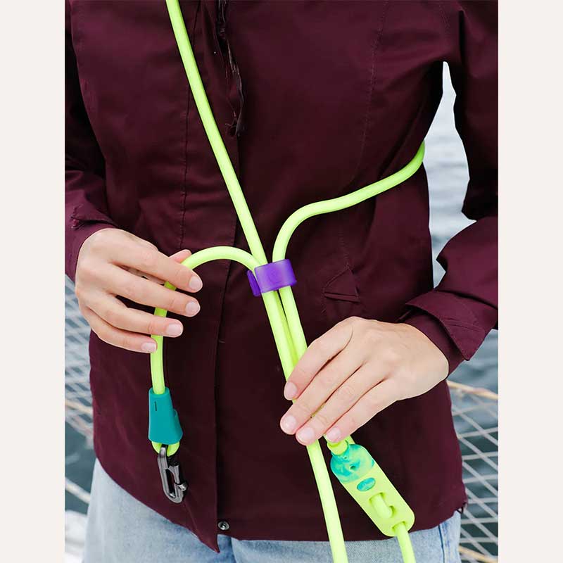 Це повідець для людей, які люблять рухатися вільно. Його можна носити на талії або через тіло, залишаючи руки для важливіших речей — обіймів, жестів, життя. А коли потрібно, він легко перетворюється на звичайний ручний повідець.