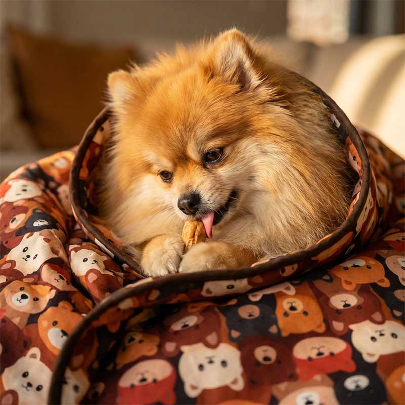 Сторона с рисунком не опасается воды, пятен и следов от лакомства. На ней можно грызть игрушки, долго жевать вкусности и не волноваться о мелочах. Эта сторона вынослива и практична.
