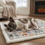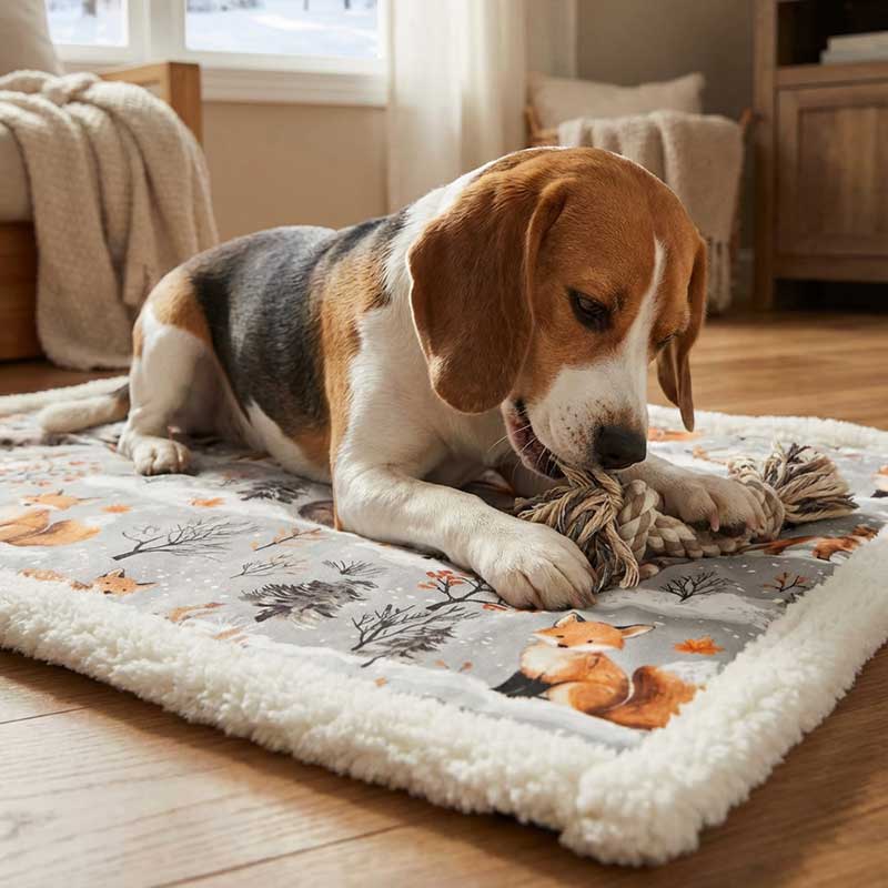 Сторона с рисунком не опасается воды, пятен и следов от лакомства. На ней можно грызть игрушки, долго жевать вкусности и не волноваться о мелочах. Эта сторона вынослива и практична.