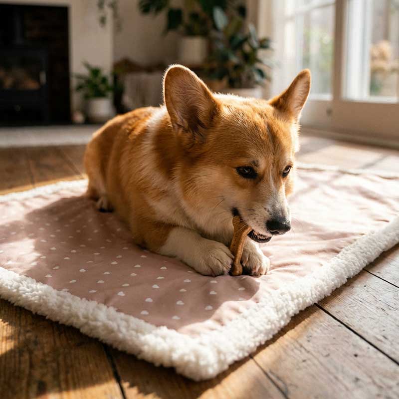 Сторона с рисунком не опасается воды, пятен и следов от лакомства. На ней можно грызть игрушки, долго жевать вкусности и не волноваться о мелочах. Эта сторона вынослива и практична.