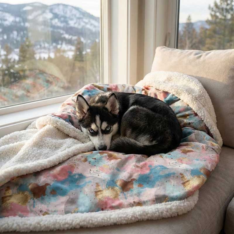 Двухстороннее водонепроницаемое одеяло с мехом Montmorency - Pastel Clouds Fur 98х62 см