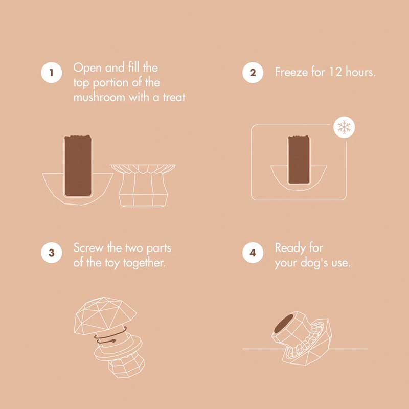 Игрушка из коллекции SuperVeggiez создана для собак, умеющих ждать и наслаждаться. Плоская шапка — как маленький столик: сюда ложится арахисовая паста, йогурт, бульонное лакомство. Внутри – пространство для замороженных вкусов, которые не спешат сдаваться.
