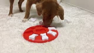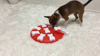 Как играть: спрячьте корм или лакомства в специальные отсеки и закройте их с помощью косточек. Некоторые отсеки можно оставить незаполненными. Покажите собаке, как добыть корм.