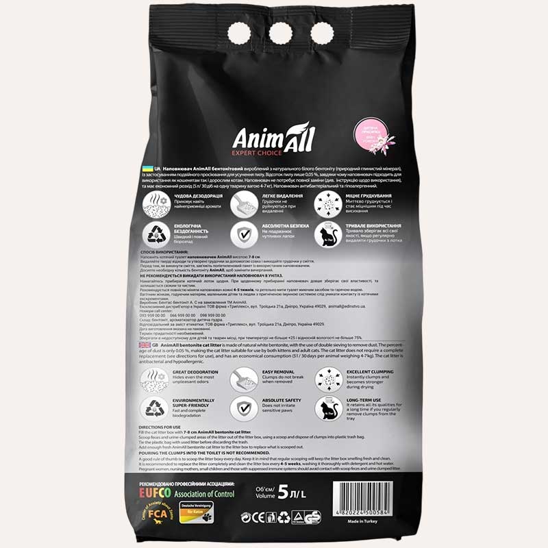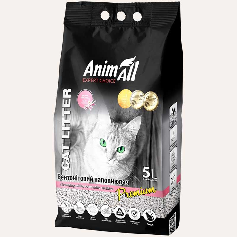 Наполнитель бентонитовый с ароматом детской пудры AnimAll - Белый, 5 л