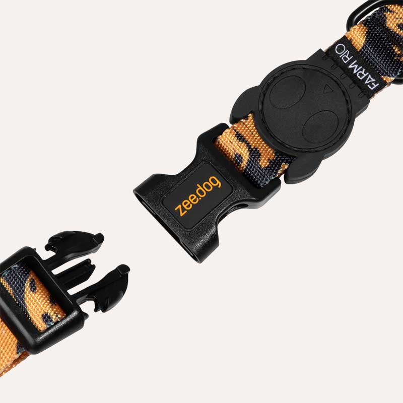 Четырехточечная пряжка работает тихо и надежно, обеспечивая уверенность в каждом шаге. А резиновый логотип Zee.Dog – не просто знак, а защита: он бережет швы и продлевает жизнь ошейника, даже если прогулки становятся ежедневным приключением.