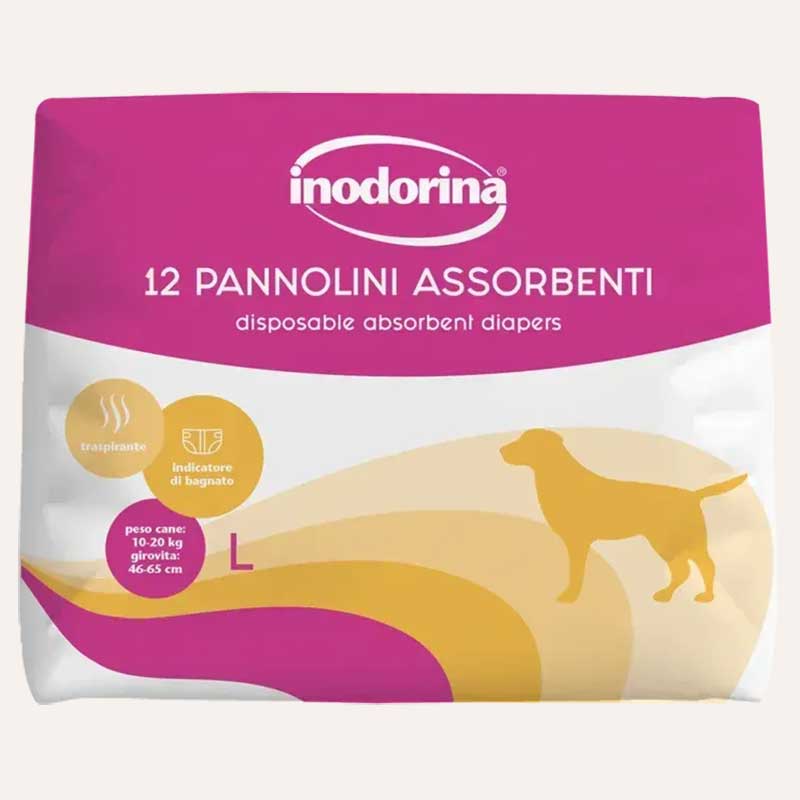 Подгузники для собак с индикатором влажности Inodorina-Pannolini Assorbenti, L (12шт)