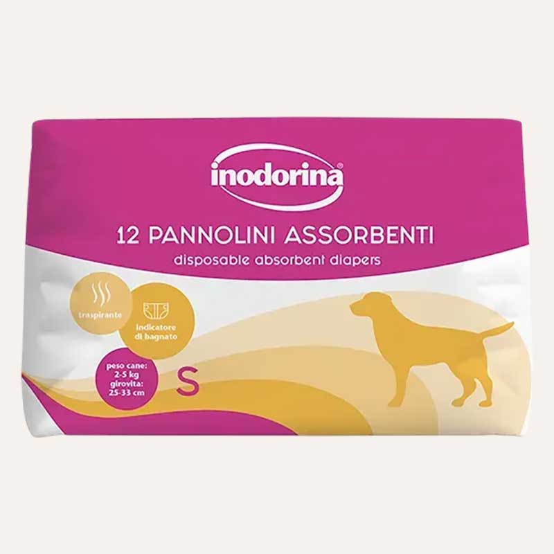 Подгузники для собак с индикатором влажности Inodorina-Pannolini Assorbenti, S (12шт)