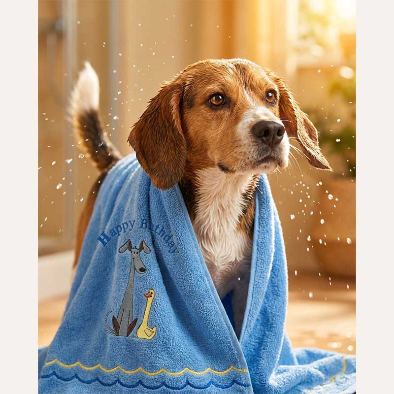 Полотенце для собак с вышивкой Montmorency - Happy Bathday (60x100 см)
