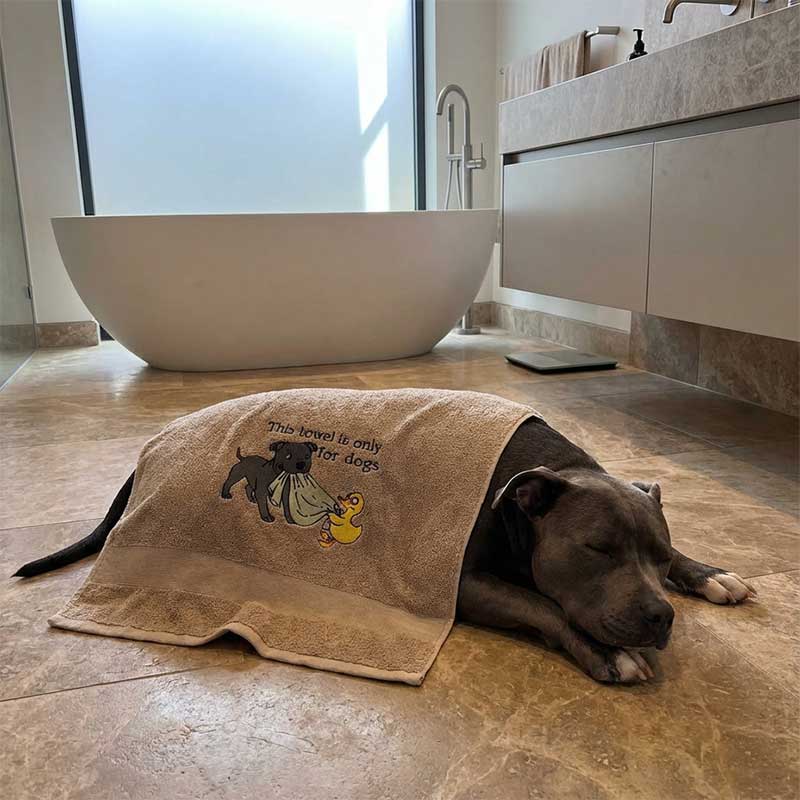 Полотенце для собак с вышивкой Montmorency - Стаффик купальщик (100х50 см)
