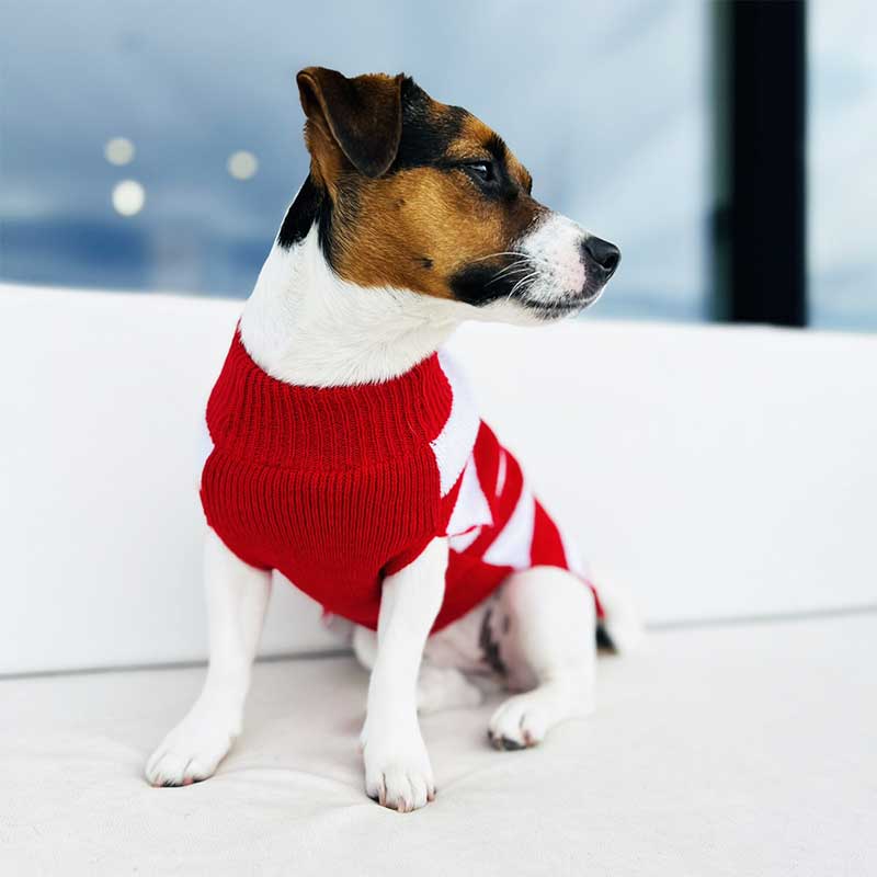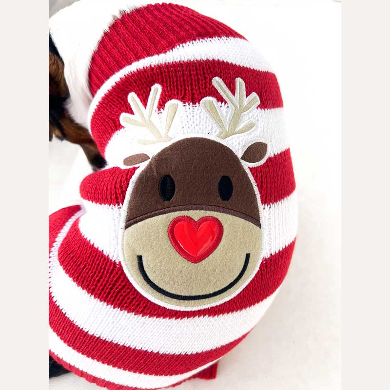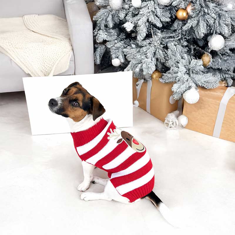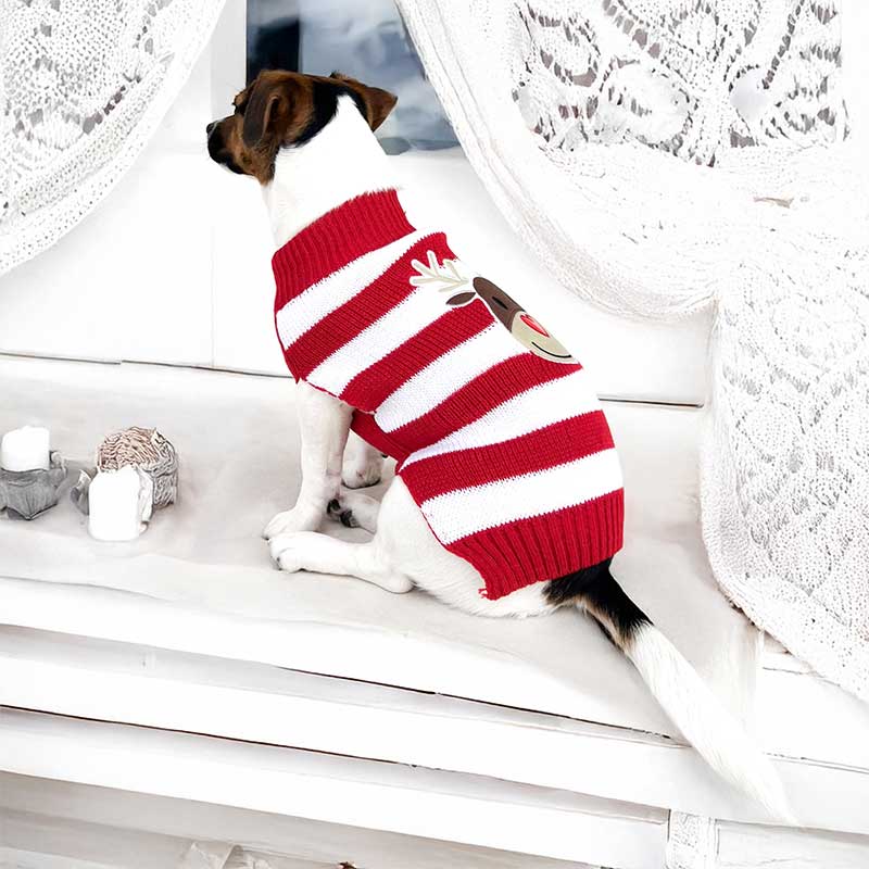 Свитер для собак красно-белая полоска с оленем PetsIn - Christmas Deer red&white, M