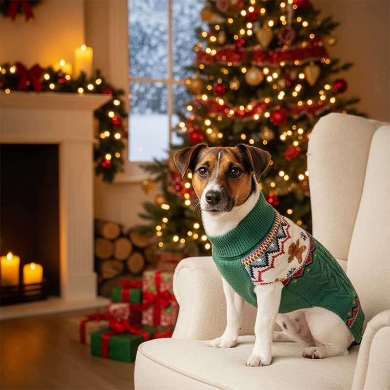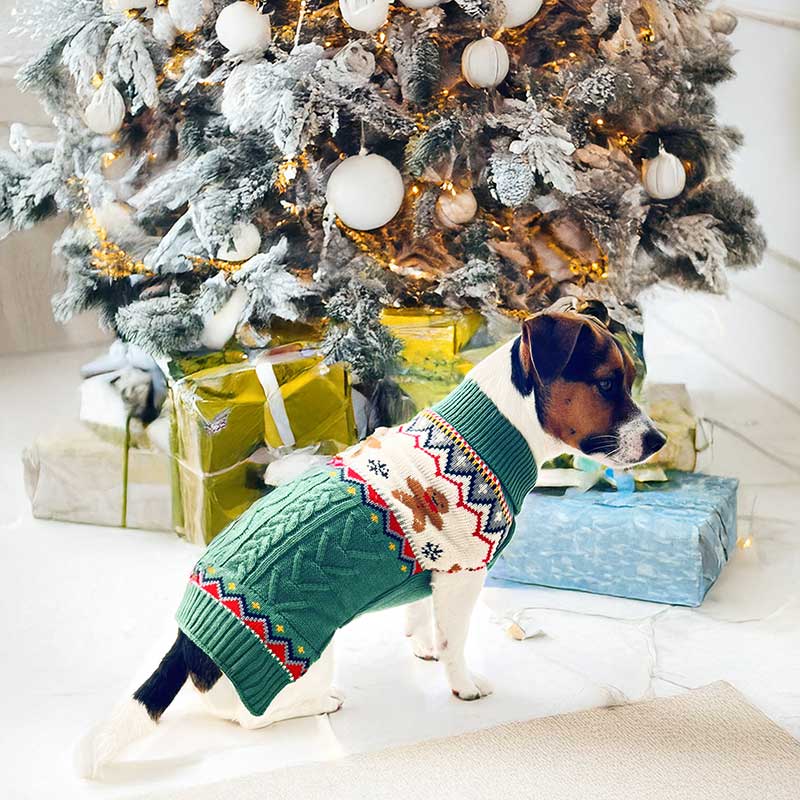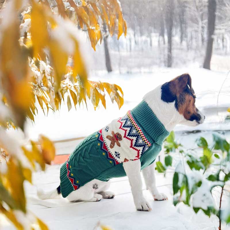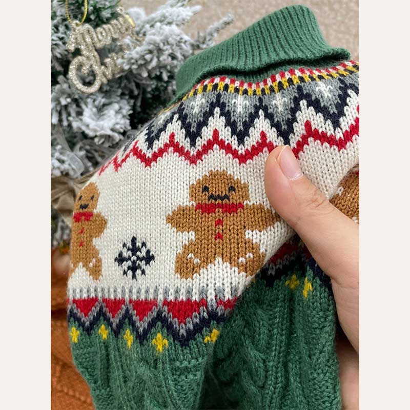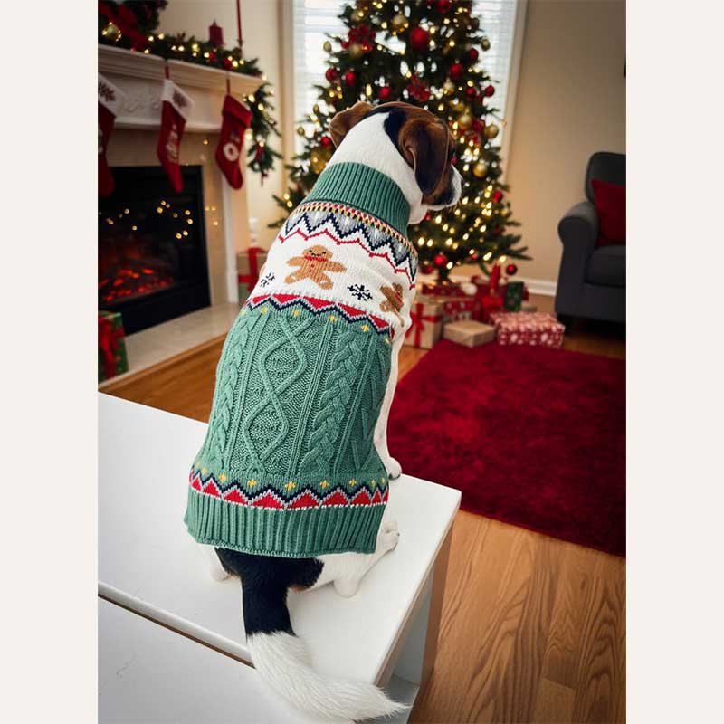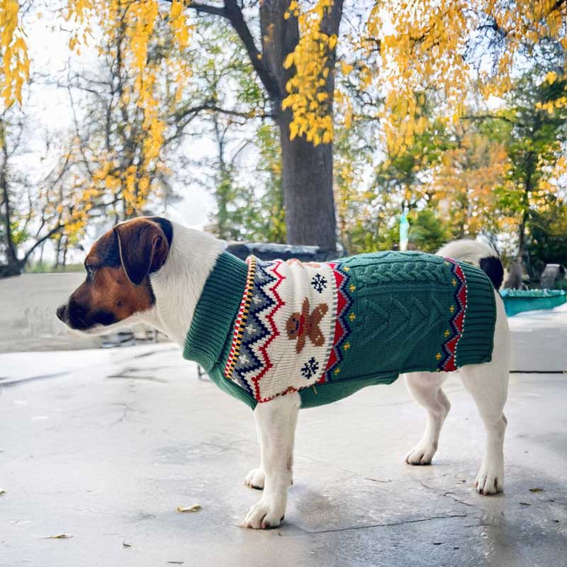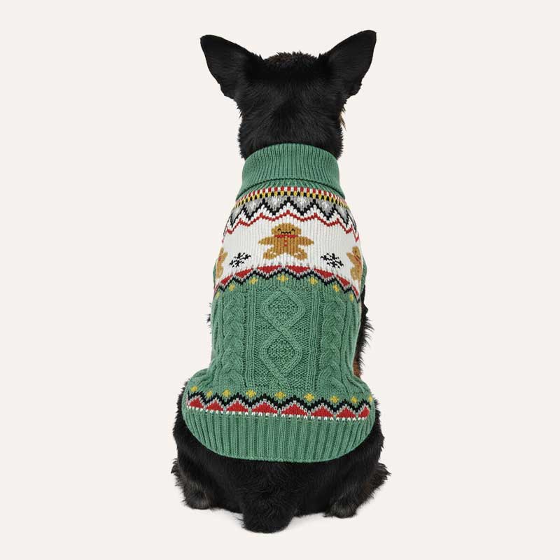 Свитер для собак зеленый с имбирными пряниками PetsIn - Christmas Gingerbread green, L