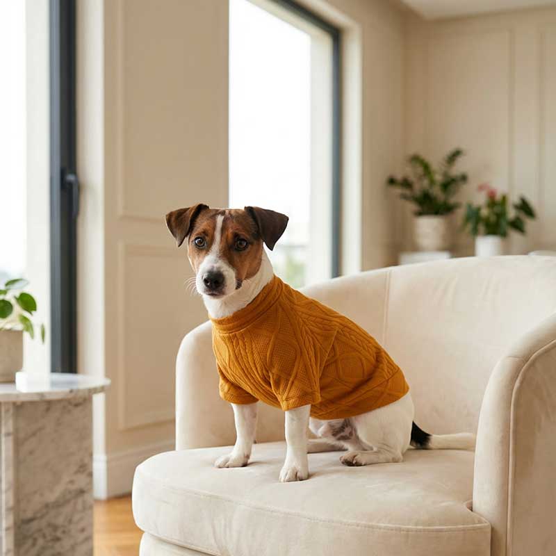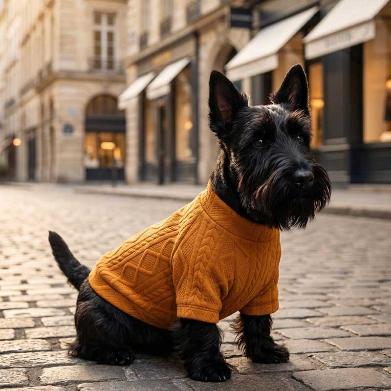 Свитшот одевается через голову, без застежек, поэтому сидит на собачке легко и естественно, не ограничивая движений и обеспечивая комфорт во время прогулок. Лаконичный, чистый дизайн позволяет фактуре и цвету говорить сами за себя.
