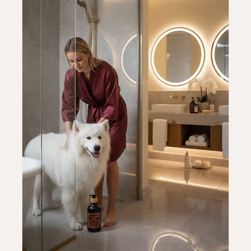 У собак он составляет около 7, тогда как у человека — примерно 5. Большинство косметических средств производится на уже готовых базах с человеческим уровнем pH, поэтому они нарушают естественный баланс кожи животных, вызывая раздражение, сухость и зуд.