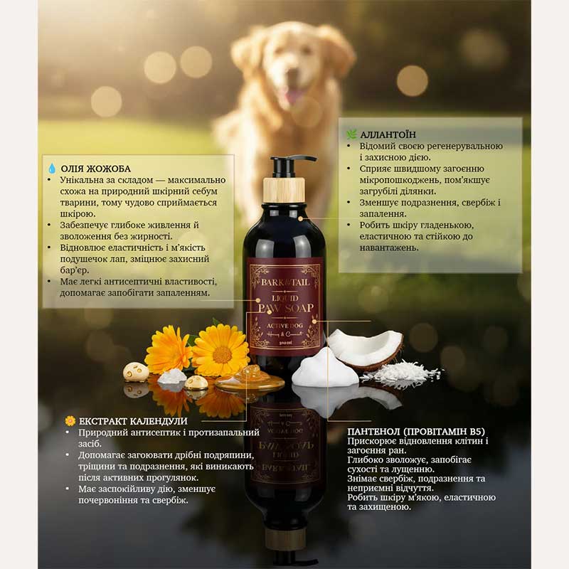Жидкое мыло-рефиллер для лап с ароматом меда и кокоса для активных собакBark&Tail - Active Dog liquid paw soap, 500 мл