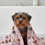 Рушник прикрашений зображеннями собачок на рожевому фоні — він одразу викликає усмішку! Стильний малюнок додає настрою й однозначно показує, що цей рушник належить вашому песику.