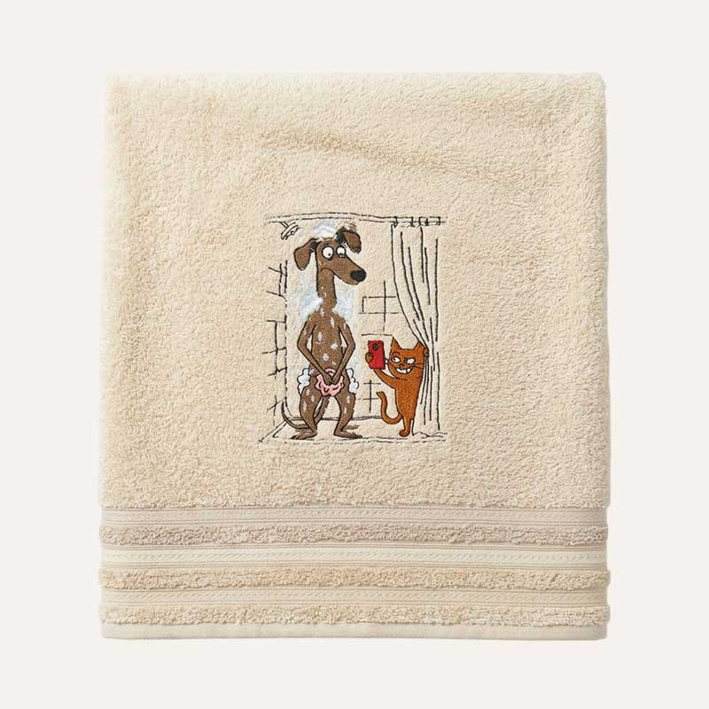 Рушник для собак з вишивкою Montmorency - Paparazzi Cat Cream (70х130 см)