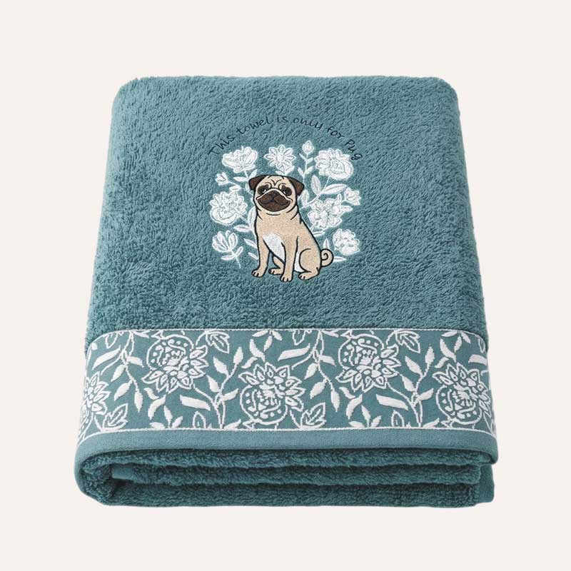 Рушник для собак з вишивкою Montmorency - Pug Teal (70х140 см)
