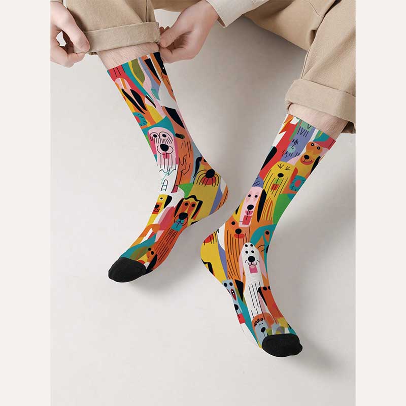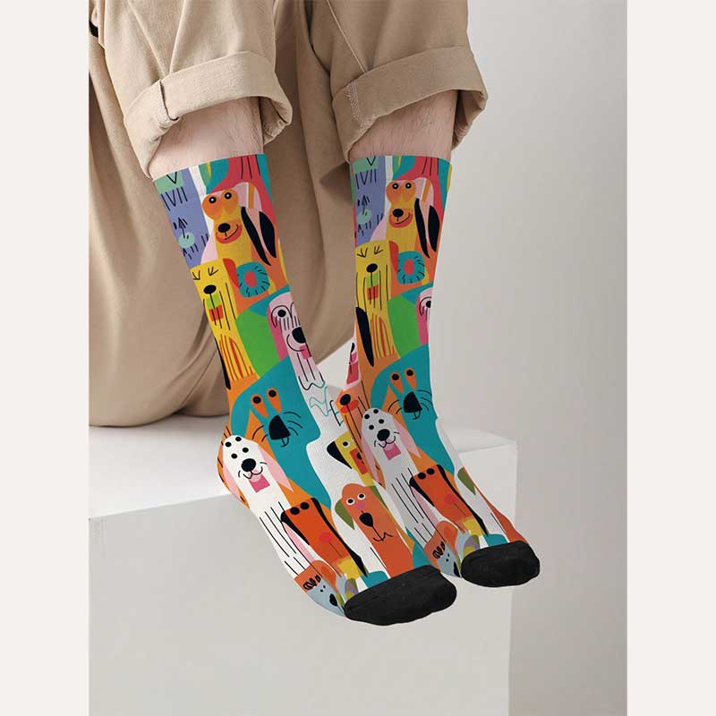 Це must-have для тих, хто цінує яскраві деталі, хоче виділитися й носити не просто шкарпетки, а витвір мистецтва. Ідеальні як для повсякденного луку, так і для подарунка справжньому dog-lover’у.