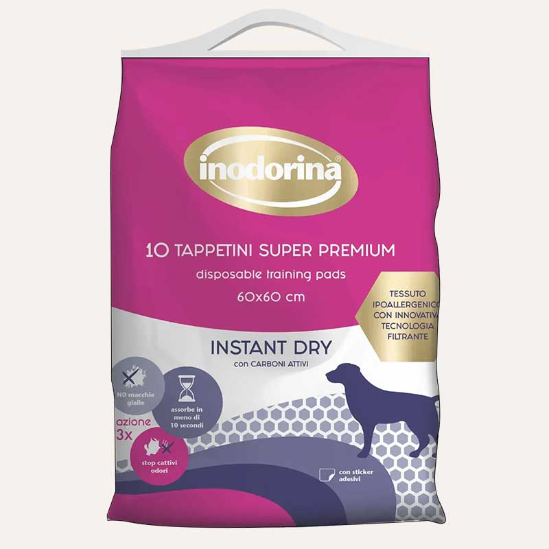 Швидкопоглинаючі пелюшки Inodorina Instant Dry — це одноразові пелюшки створені для зручності власників та комфорту улюбленців у будь-який період життя. Вони допоможуть цуценятам швидко навчитися справляти потреби в потрібному місці, стануть у нагоді літнім собакам або тваринам у період відновлення після хвороб.