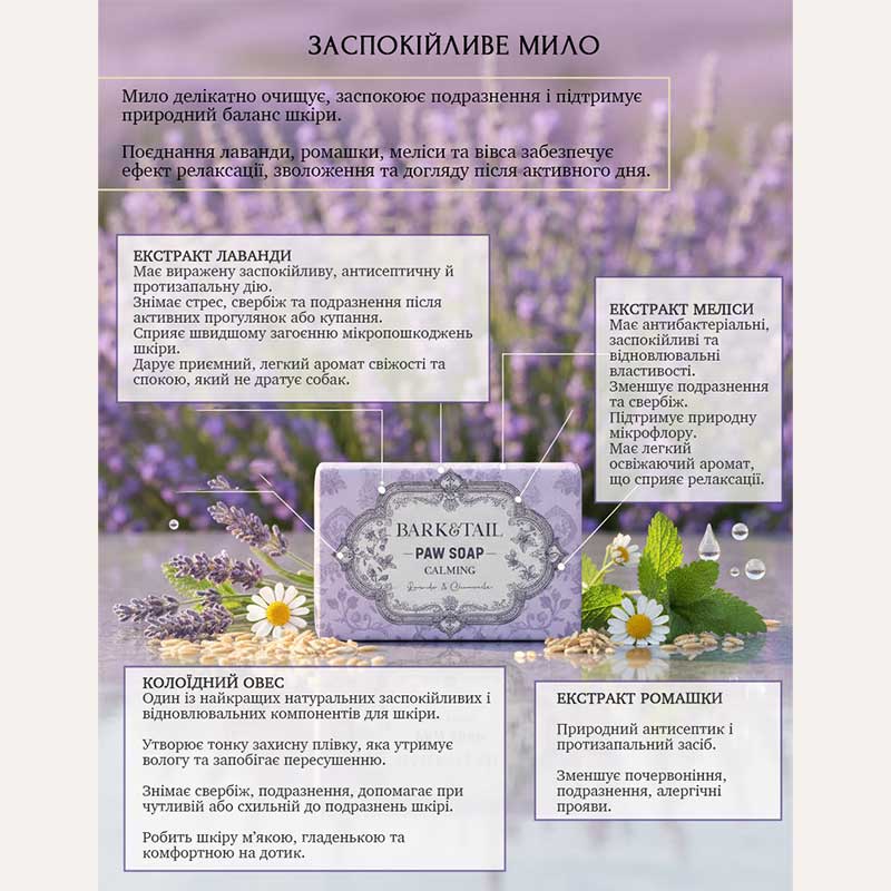 Заспокійливе мило для лап з лавандою Bark&Tail - Paw Soap Calming, 90 г